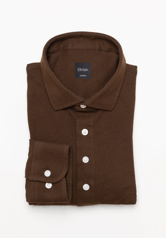 Brown Feather Soft Piqué Popover Full Sleeve Polo Shirt