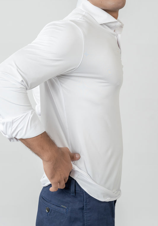 White Performance Jersey 4 Way Super Stretch Shirt - Wrinkle Free