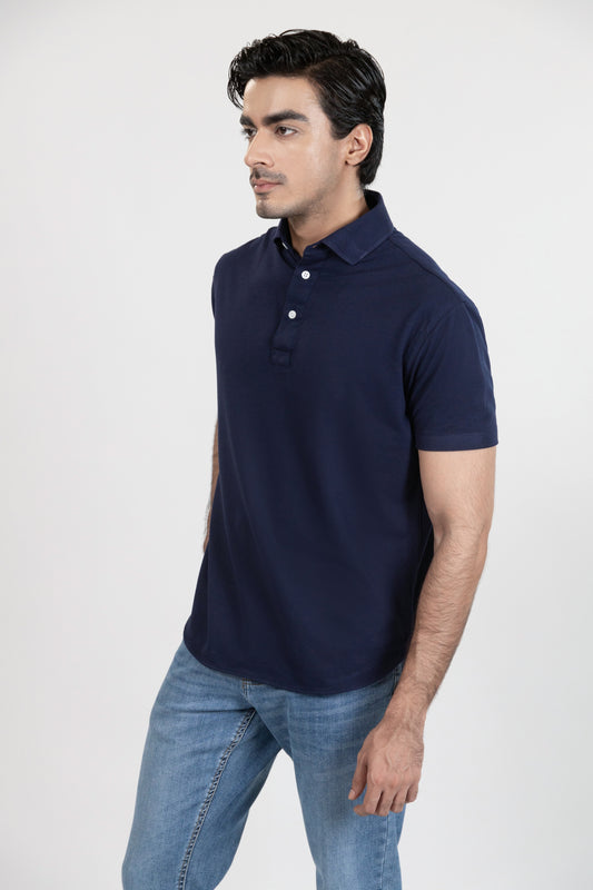 Midnight Blue Feather Soft Piqué Half Sleeve Polo Shirt