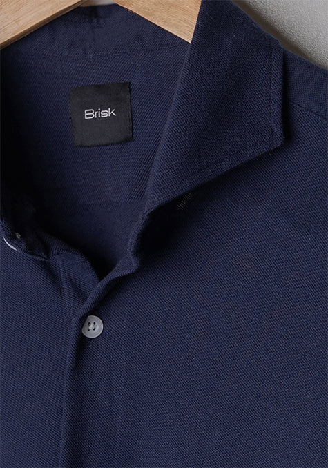 Midnight Blue Feather Soft Piqué Half Sleeve Shirt