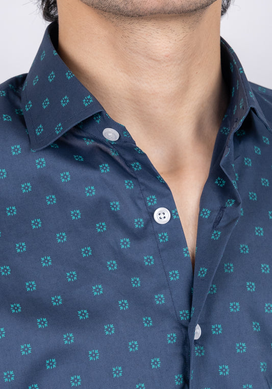 Green On Blue Light-Weight Printed Shirt - Half Sleeves