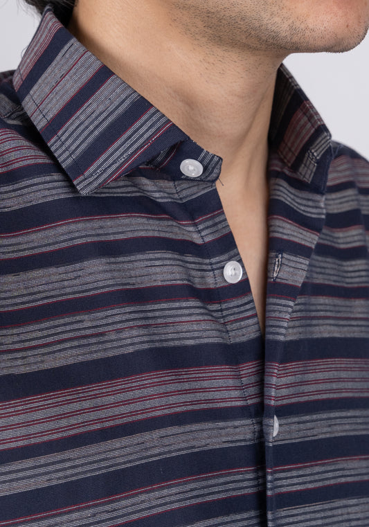 Navy Blue Stripes Light-Weight Half Sleeves Shirt