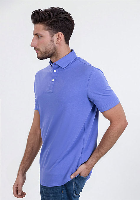 Mid Blue Feather Soft Piqué Half Sleeve Polo Shirt