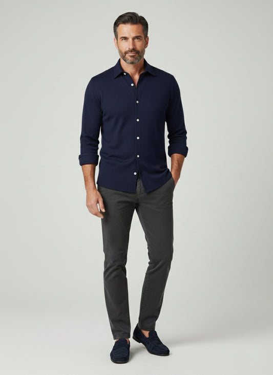 Midnight Blue Feather Soft Piqué Half Sleeve Shirt
