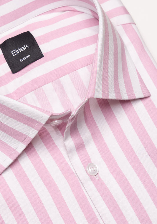 Pink Bold Twill Stripes Pima Cotton Shirt - Sale
