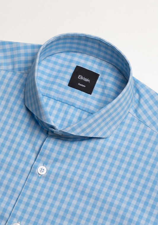 Wrinkle-Free Blue-Grey Stretch Gingham Shirt- Sale