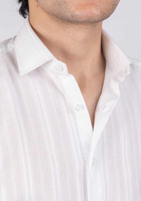White Linen Structured Summer Feather-weight Half Sleeve Shirt - Sale