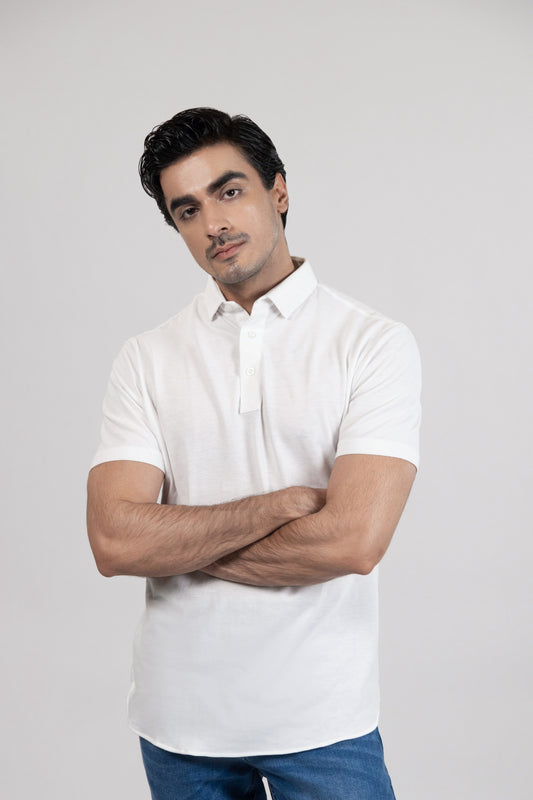 White Feather Soft Piqué Half Sleeve Polo Shirt