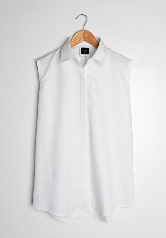 WHITE JACQUARD CRISP & AIRY SLEEVELESS SHIRT