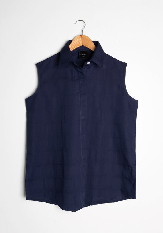 MIDNIGHT BLUE JACQUARD CRISP & AIRY SLEEVELESS SHIRT