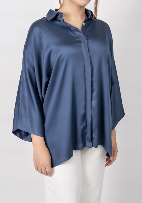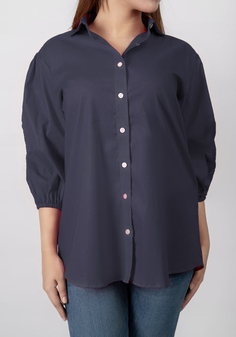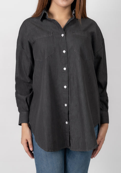 SUMMER DENIM DARK WASH OVERSIZED SHIRT