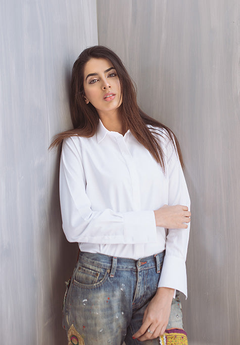 WHITE SOFT COTTON SHIRT - UPPER HALF FLAP