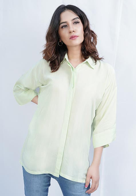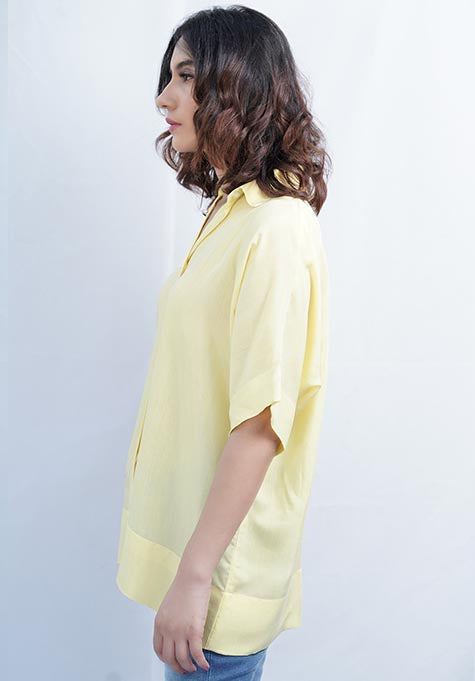 LAVENDER VISCOSE HALF SLEEVES SHIRT - NOTCH COLLAR