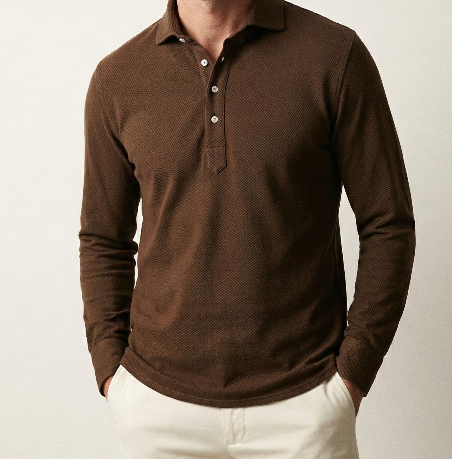 Brown Feather Soft Piqué Popover Full Sleeve Polo Shirt
