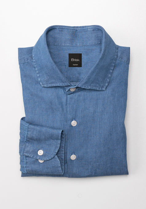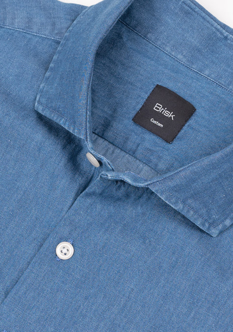 DENIM MEDIUM WASH SHIRT - CUT AWAY CLASSIC COLLAR