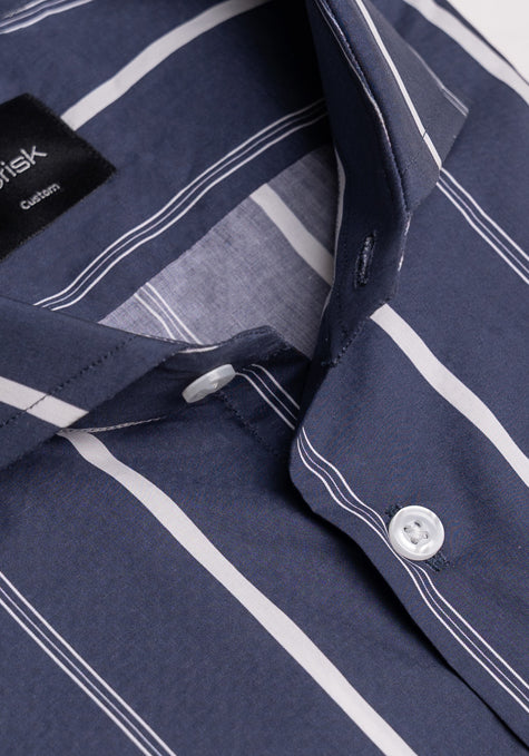 Fine White On Navy Wide Stripes Shirt - Sale