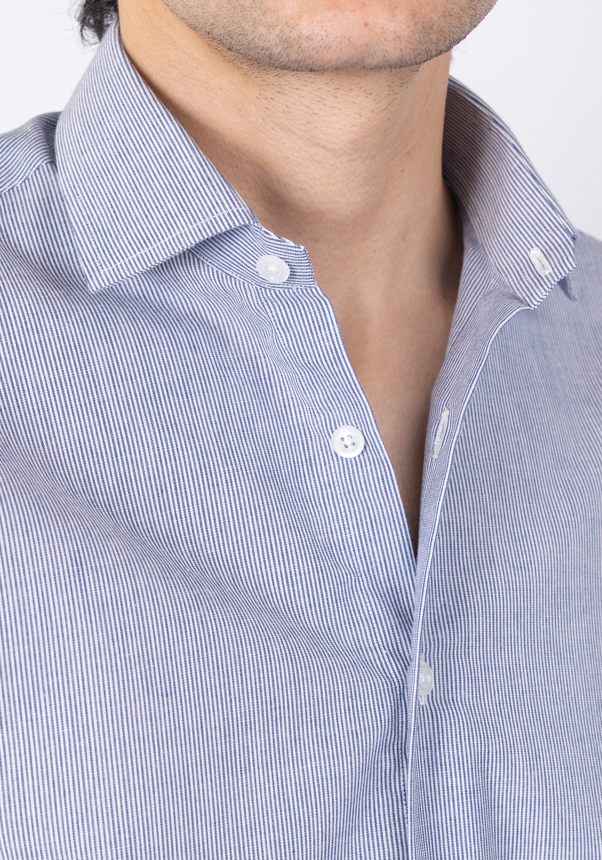 Elevate your casual wardrobe with this navy striped lightweight half sleeves shirt, designed for all-day comfort and effortless style. Crafted from breathable fabric, it keeps you cool in warmer weather while offering a sleek, modern look. The classic navy stripes add a touch of timeless appeal, making it perfect for both everyday wear and laid-back outings. Pair it with jeans, chinos, or shorts for a relaxed yet refined outfit.