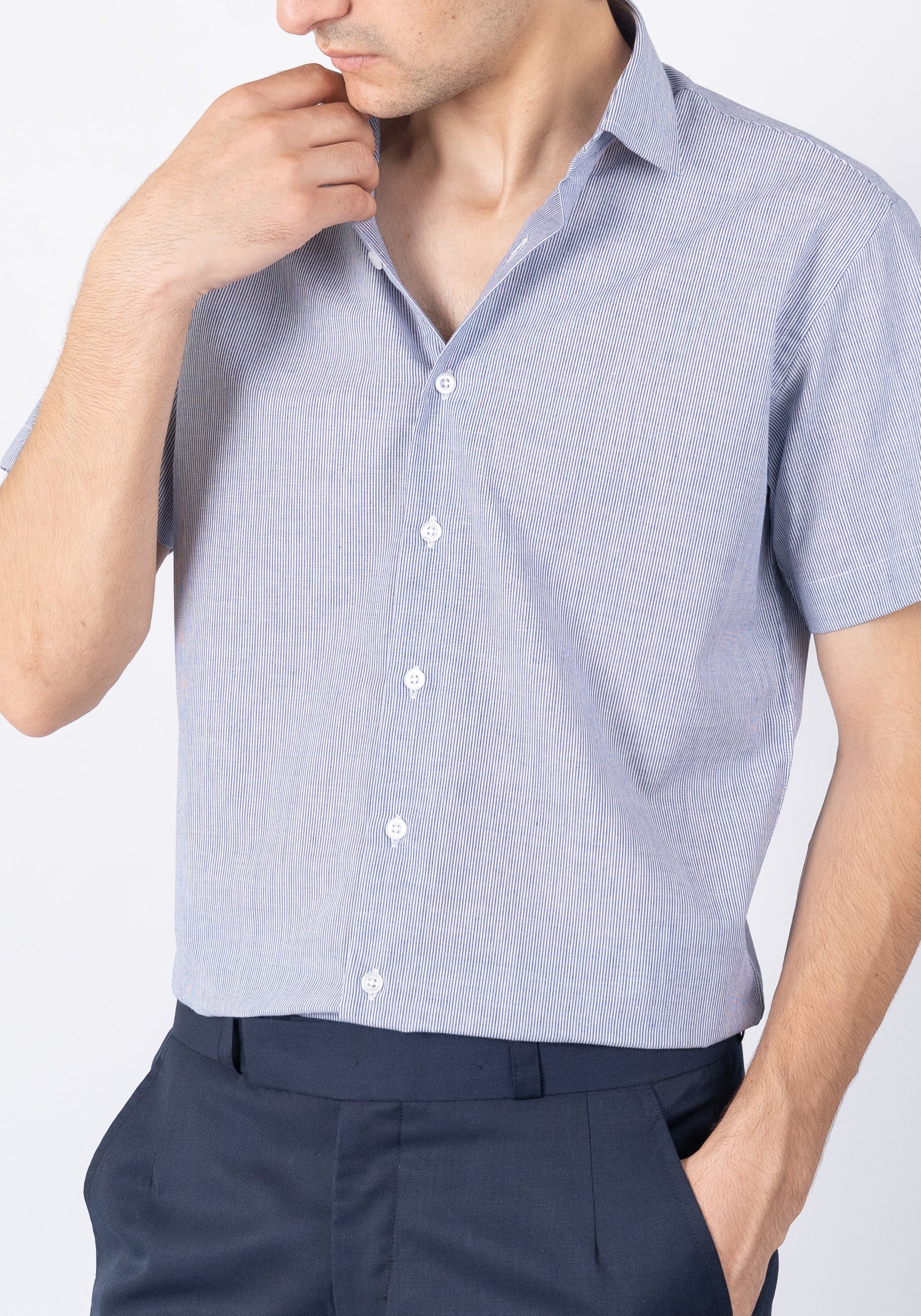 Navy Blue Stripes Light-Weight Half Sleeves Shirt