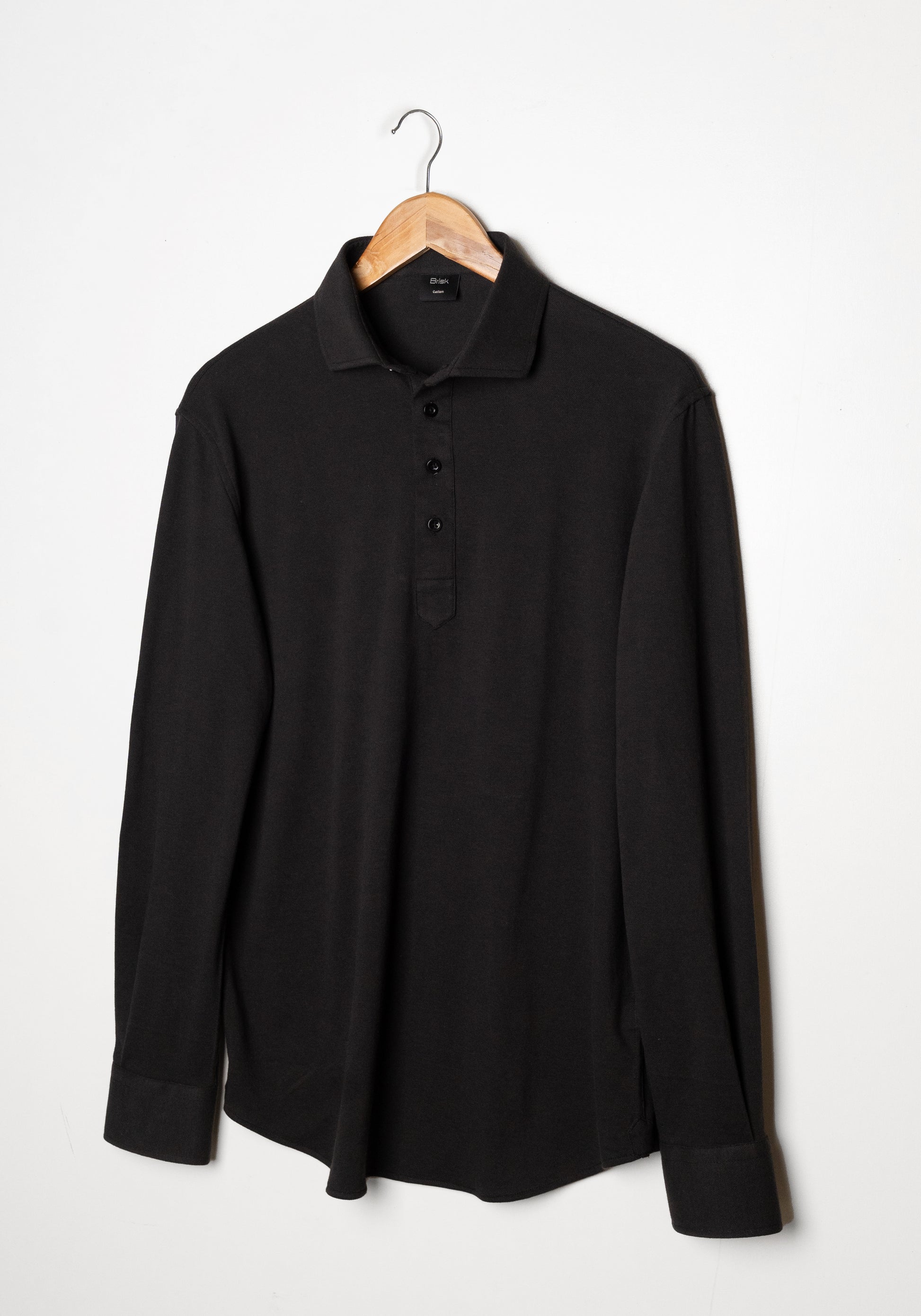 Washed Black Feather Soft Piqué Popover Full Sleeve Polo Shirt